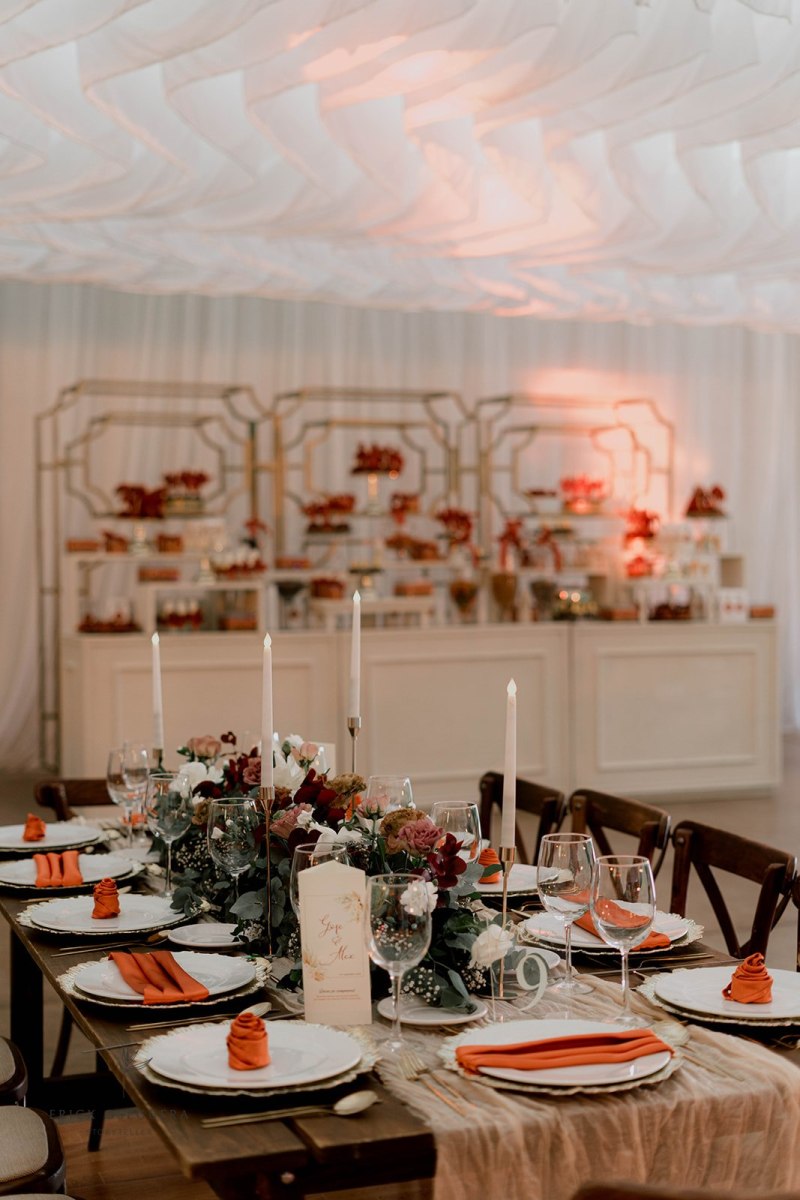 Cuenta con carpa de lujo sobre jardín, cortinas perimetrales y luz interior, estancia privada con baño exclusivo para los novios, área de lobby, para que sus invitados disfruten de la calidez que La Casa de Piedra les ofrece.